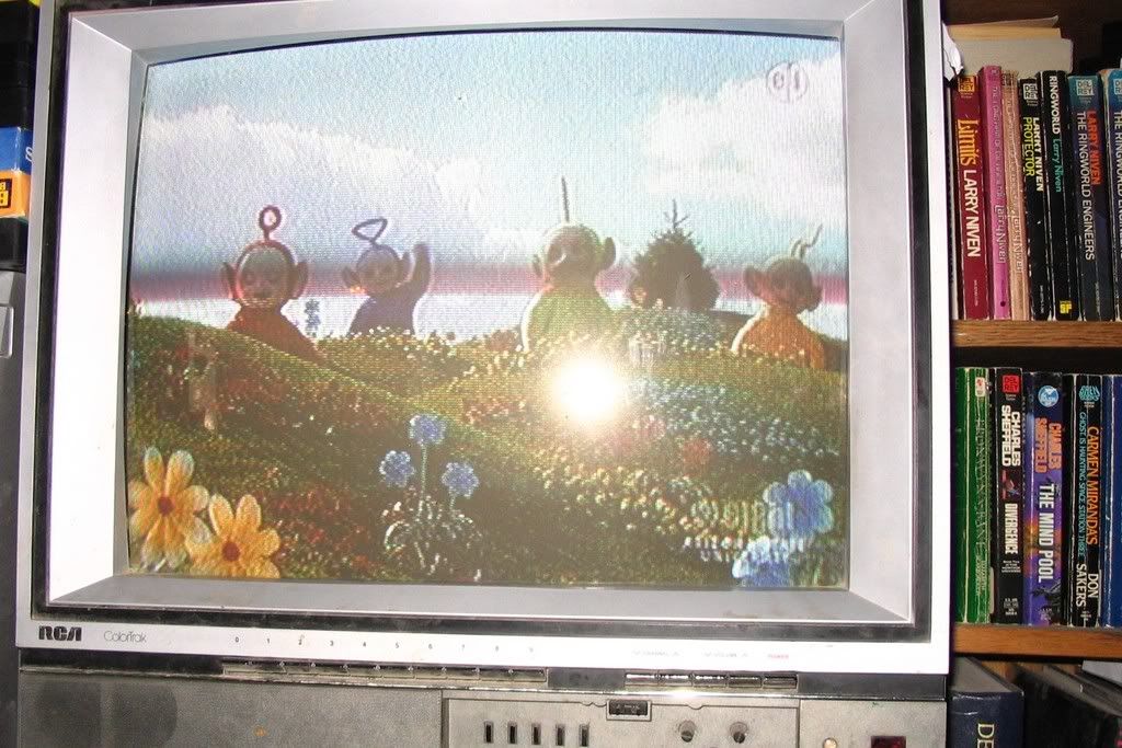 Now, at the ripe old ages of 6.5 yrs and 4.5 yrs my DD's have discovered a love for the Teletubbies and Barney. DD2 was using the digital camera to take pictures, and she especially wanted to remember the pretty flowers on the Teletubies show. I was going to post a picture, but I can't get photobucket to give the the right code for a thumbnail pic. I'll see if DH can help me tomorrow (well later today ;-)