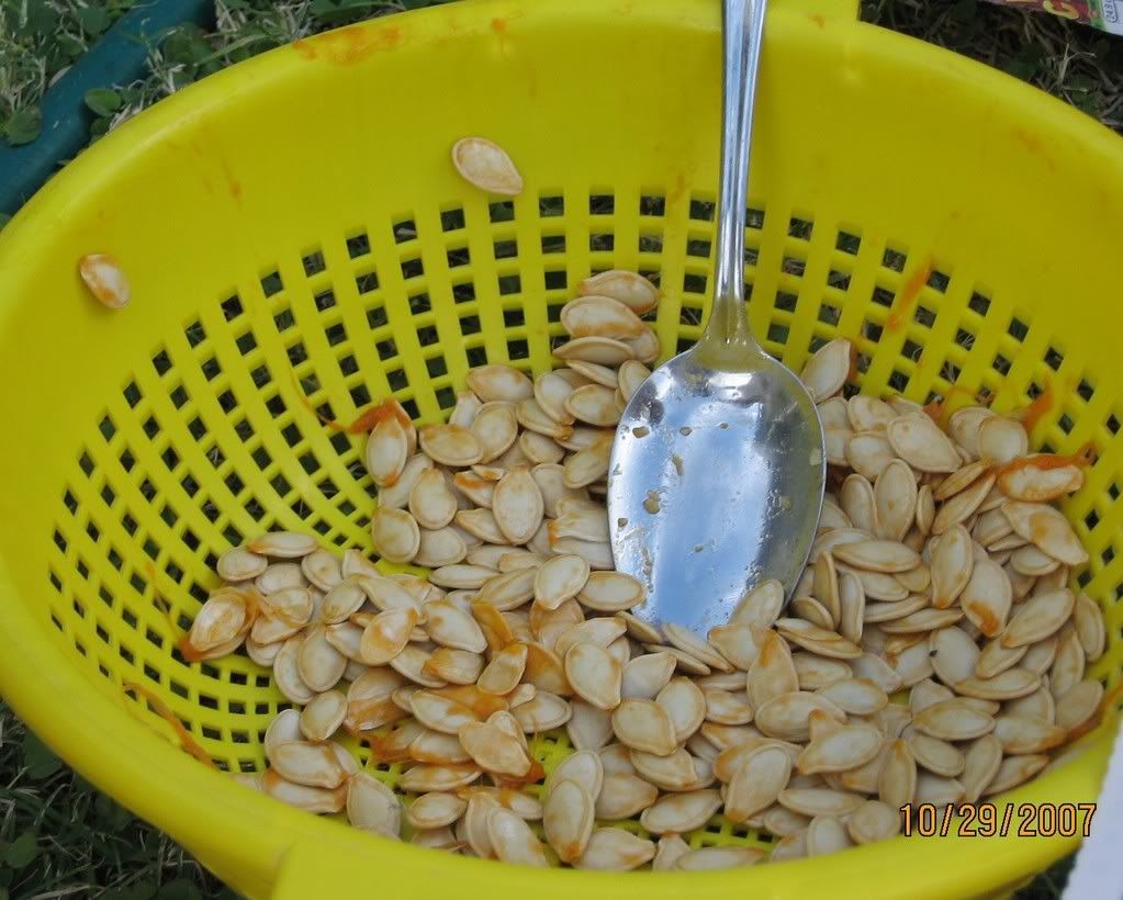 Oct. 30th, 2007 03:44 pmWell, it's that time of year, again. Where we acquire innocent pumpkins, cut their heads off, scoop out their guts, then cook and eat their seeds.