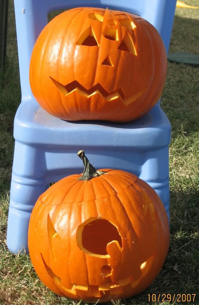 This year we got three pumpkins. We carved two yesterday (S's and C's)