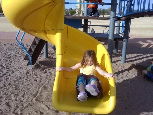 Jan. 7th, 2010 07:52 pmSo today we were at the park with my kids' best friends. S wanted her picture taken on the slide, and I did not have my camera with me.