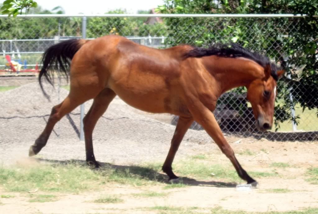 After riding for about fifteen minutes I decided to stop. I didn't want to overdue it on the first day and wear him out. I then let him loose to graze and he promptly demonstrated just how much he was not worn out yet.