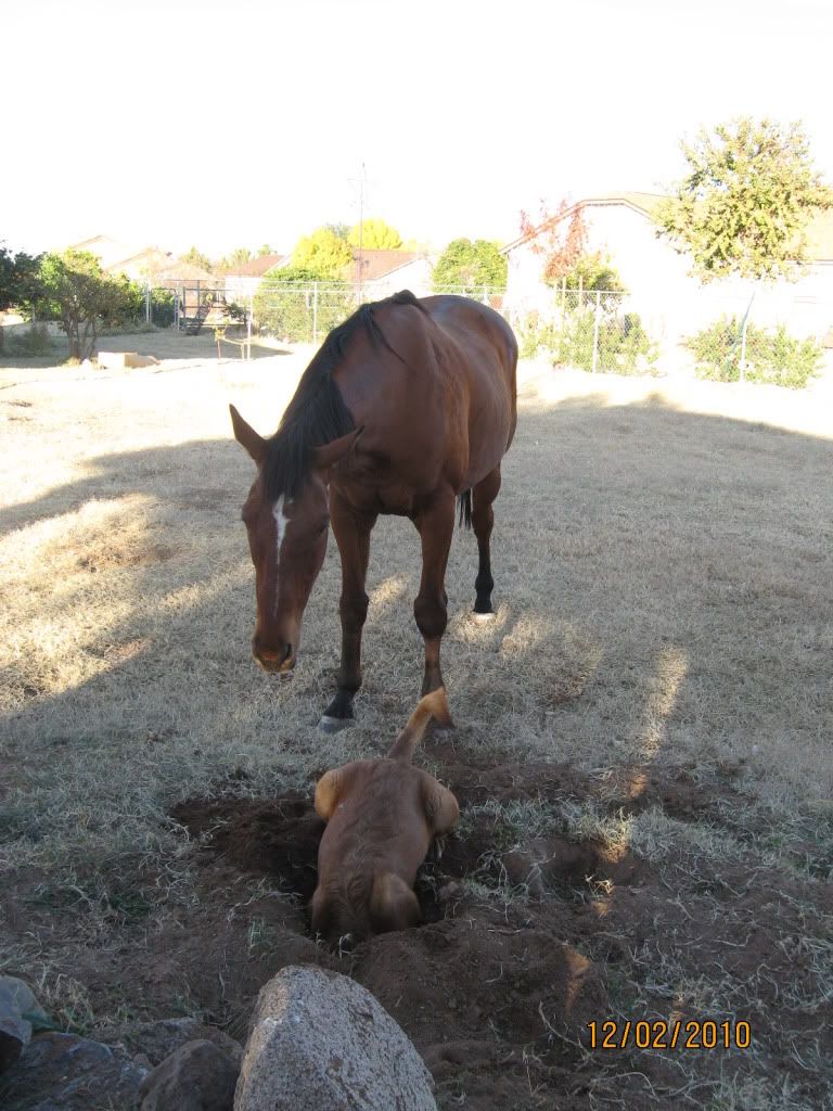 We have gophers. As a result we have many holes in our yard. Usually they are started by the gophers and enlarged by the dogs in their desperate (and joyful) attempts to reach the gophers.