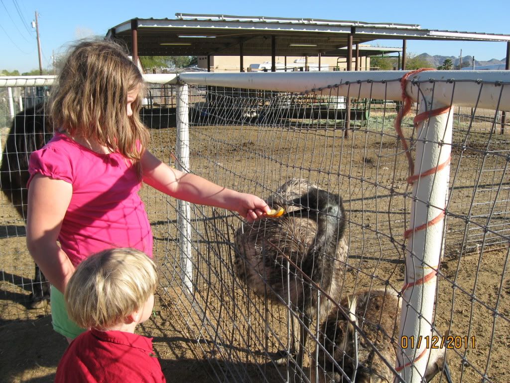 They have hand fed the emu grass, orange peels, orange fruit and orange leaves.