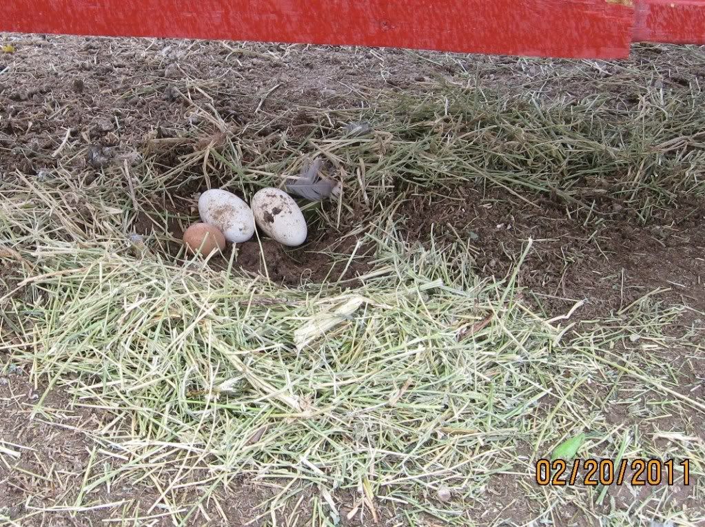 After we decided to let the geese try to take care of their eggs themselves, I put it back in the horse/damn geese/chicken yard. Two days later we found a second goose egg (nestled next to a chicken egg in a very nest like hole dug out of the the mud and surrounded by hay).