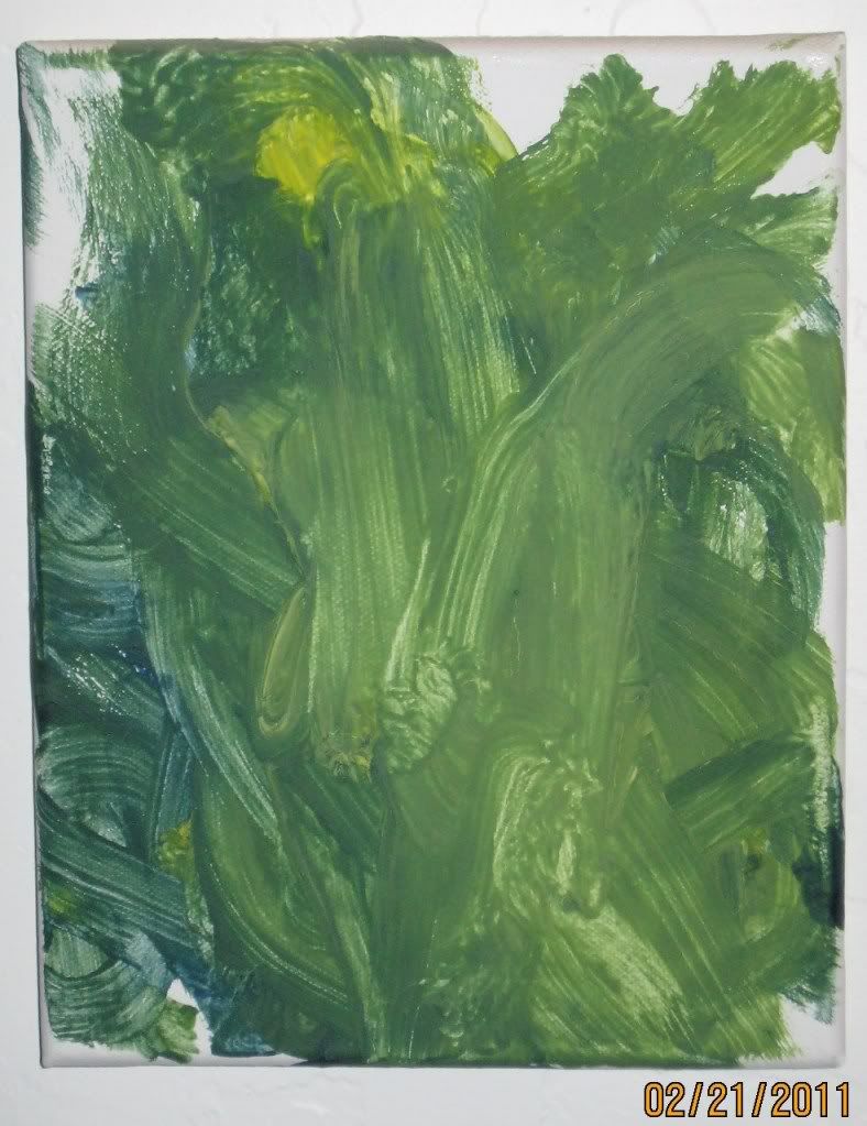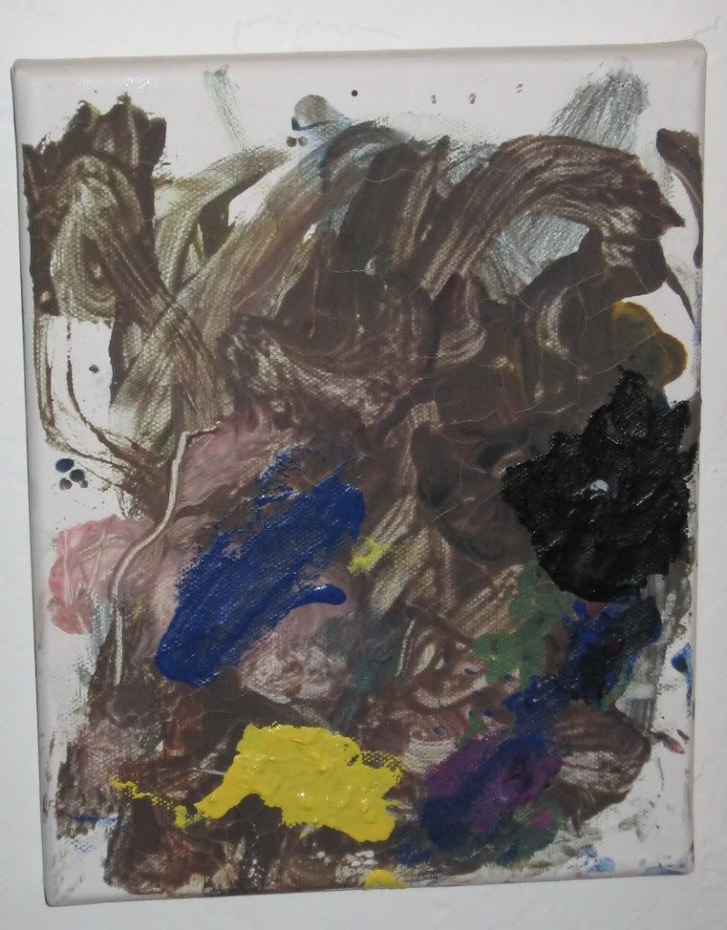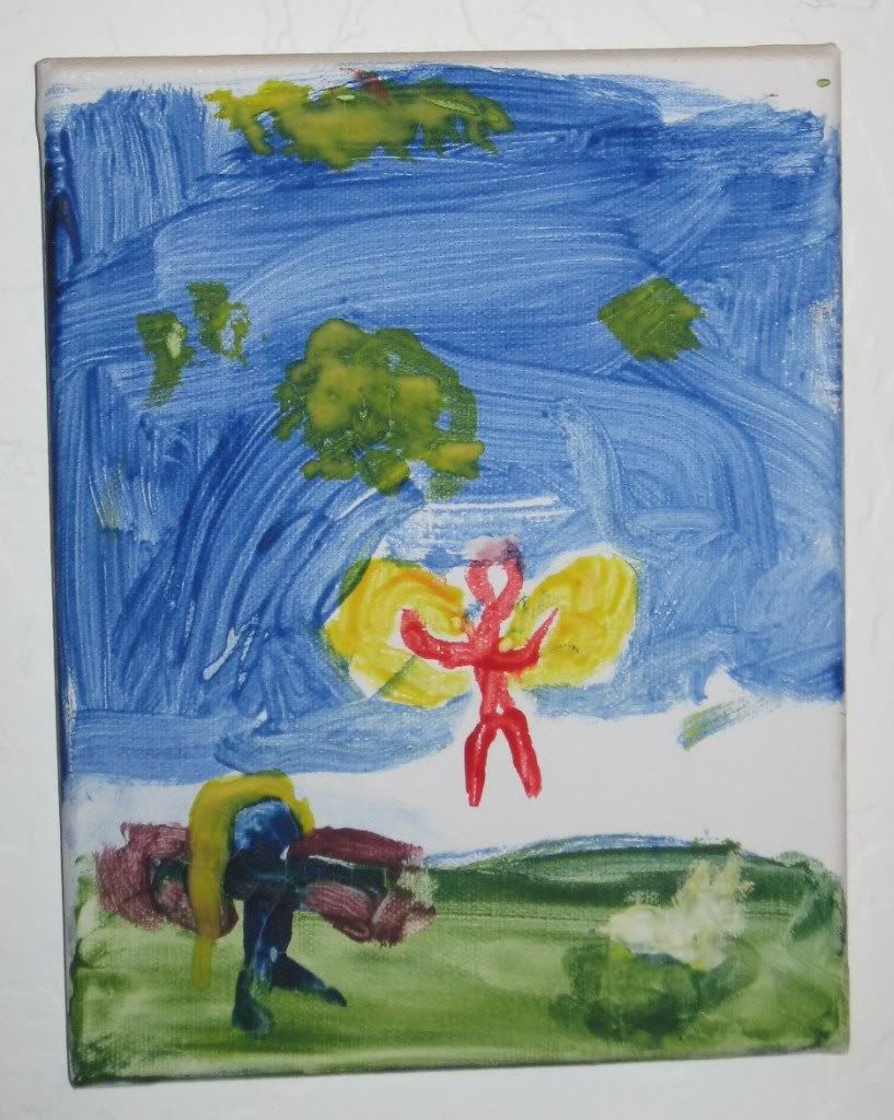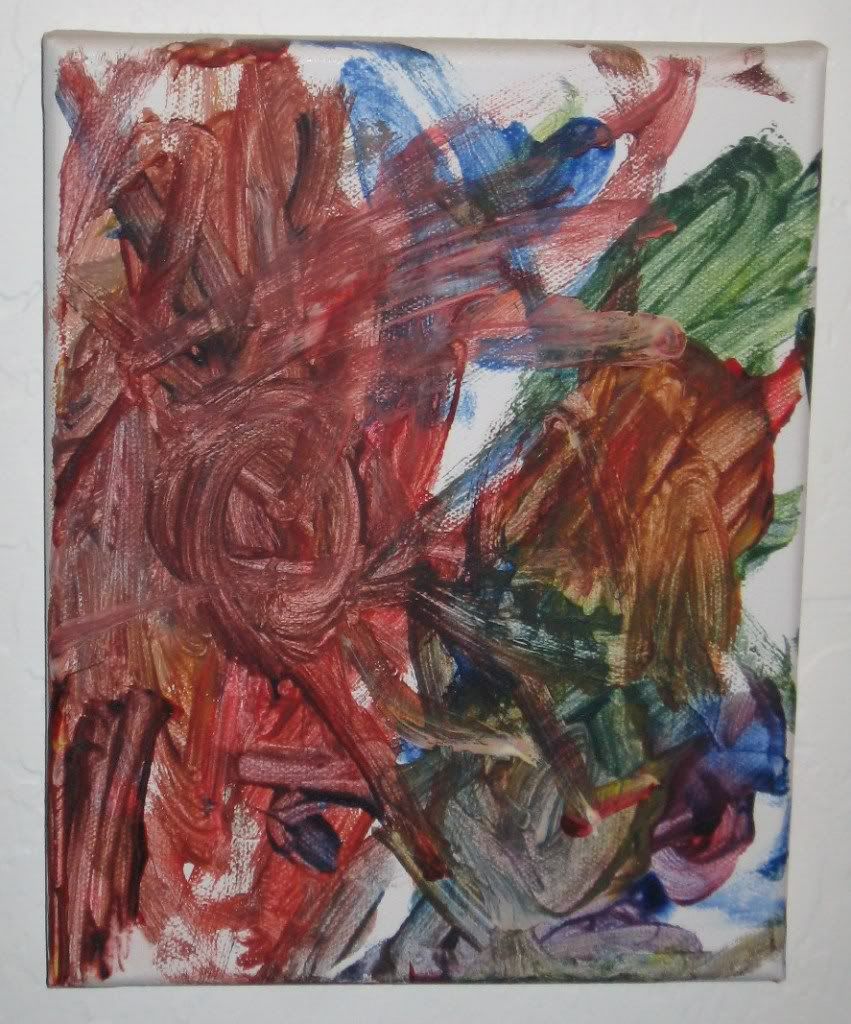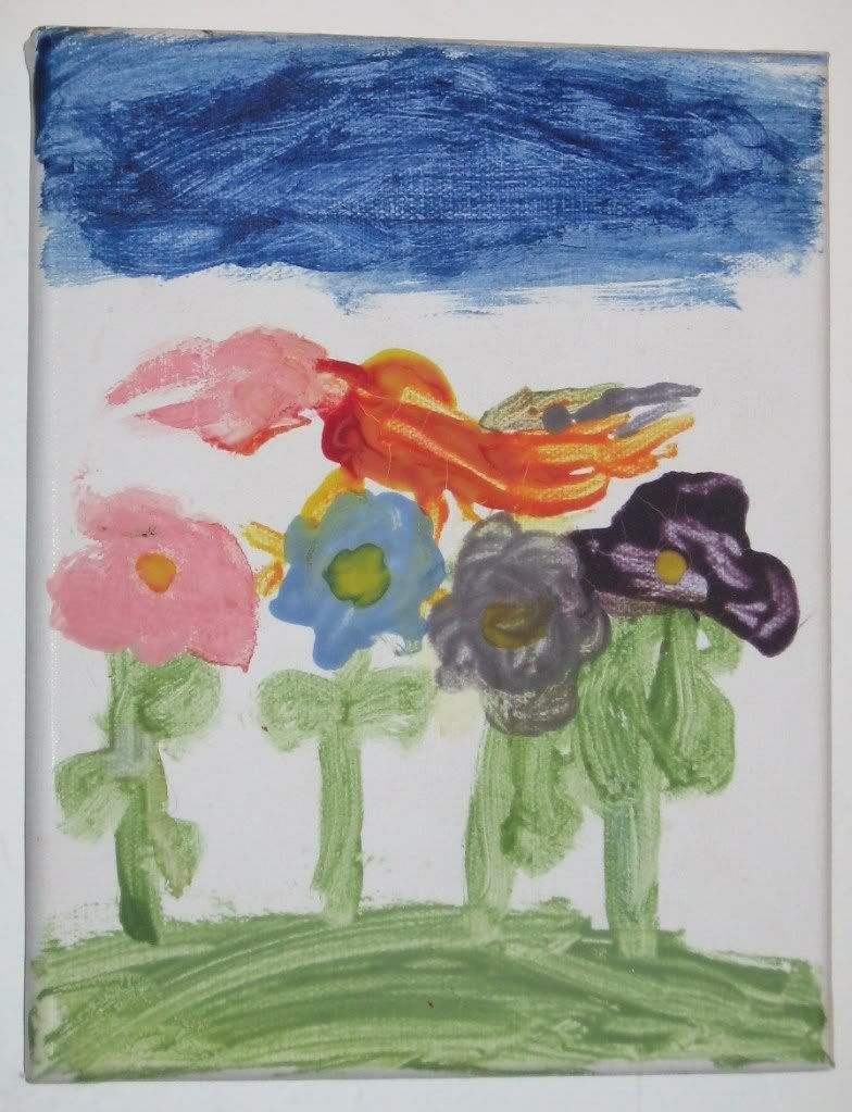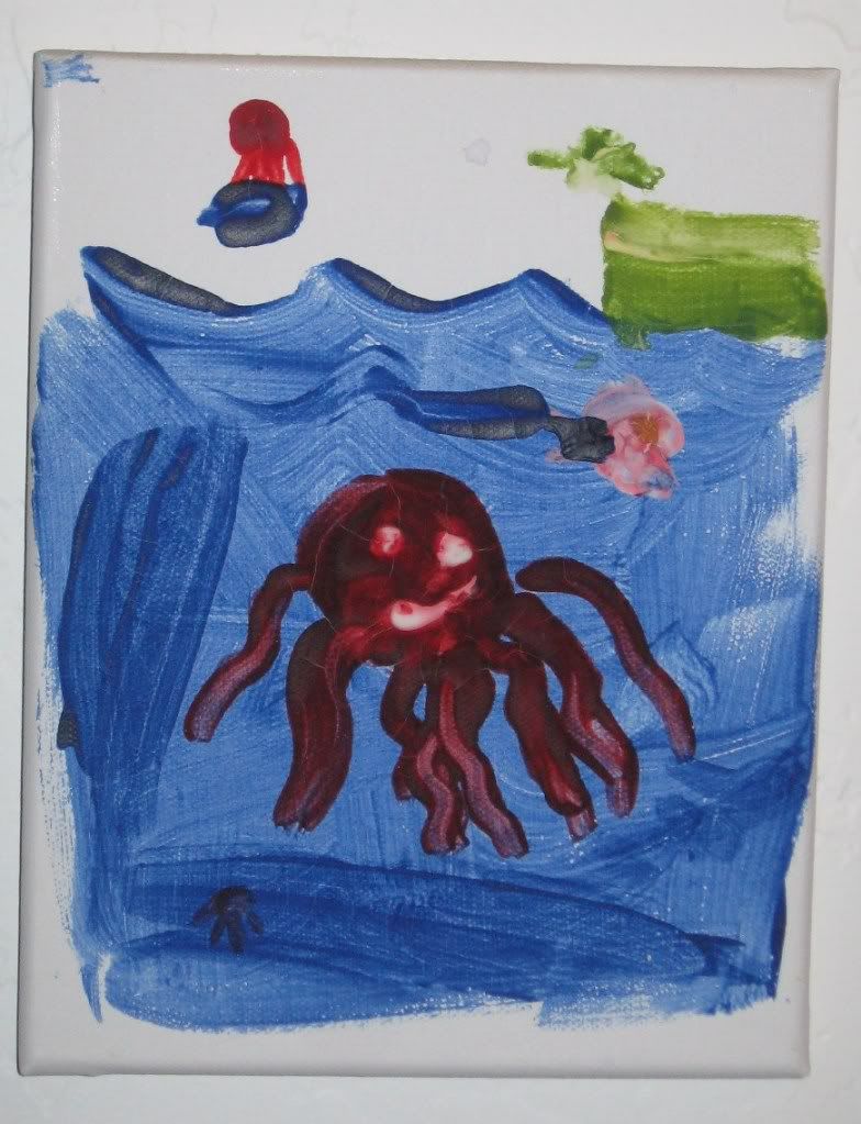 For a group birthday present my sister got my kids a painting set including paints, canvas and brushes. The kids were really excited to get to paint on canvas, and the resulting paintings are hanging on the wall in our hallway.