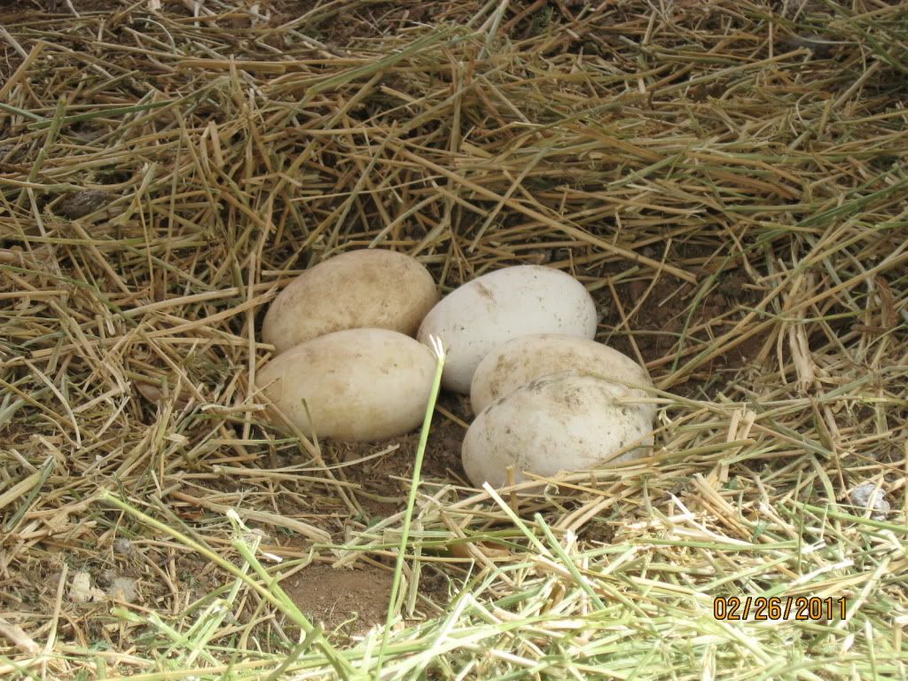 Five goose eggs.
