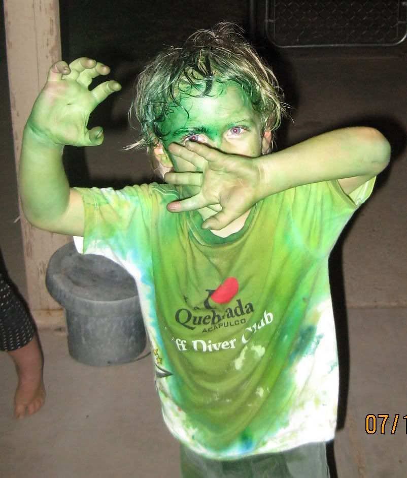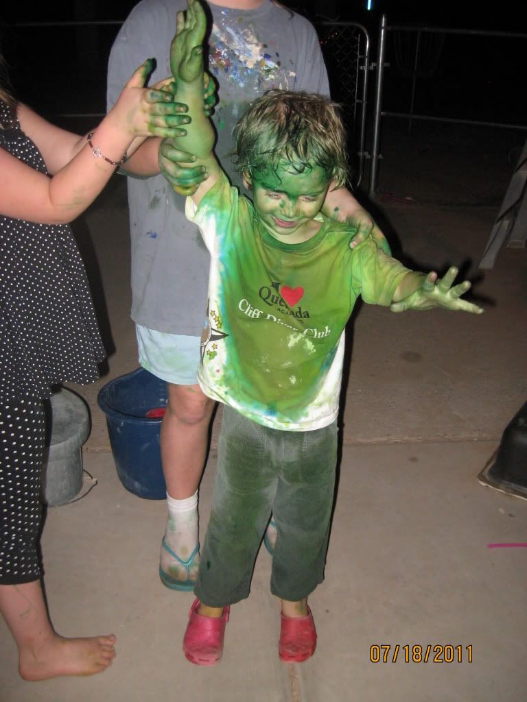 Most of it washed right off, but it sure did make the bath water green.