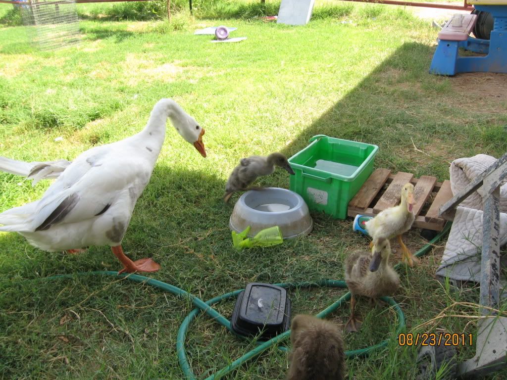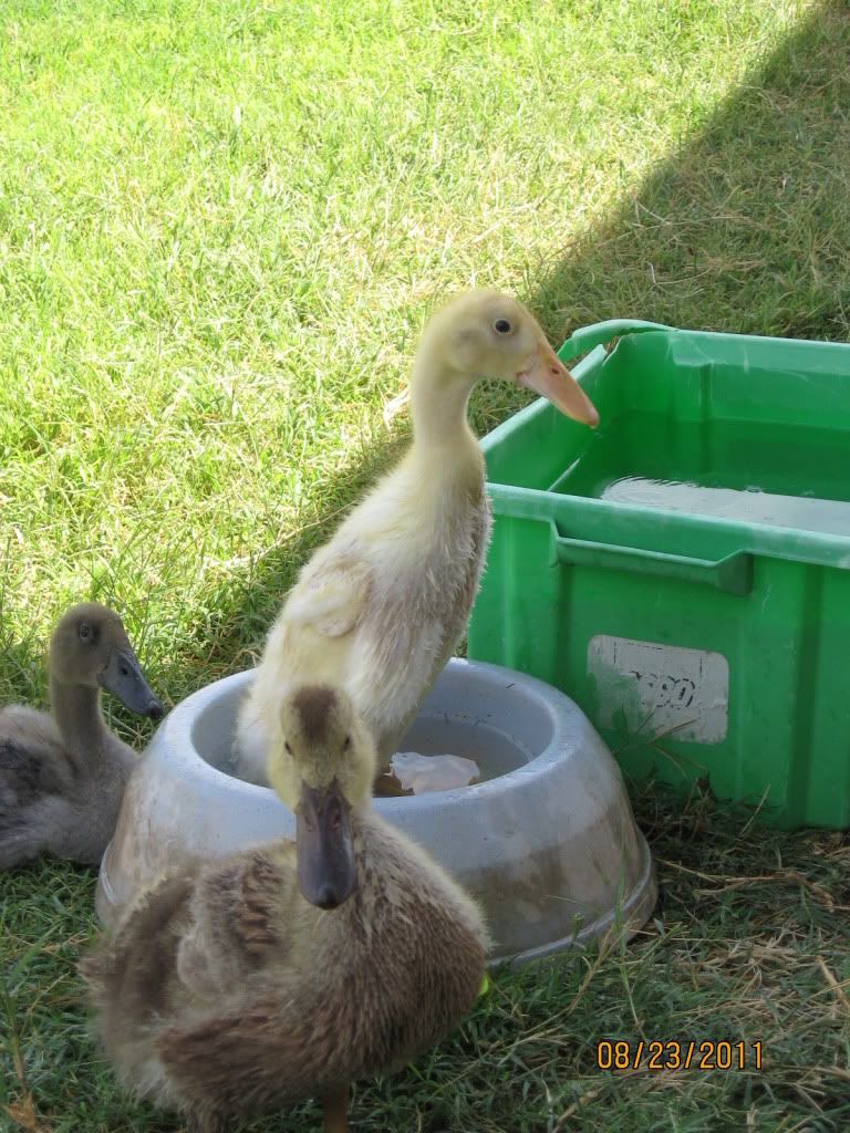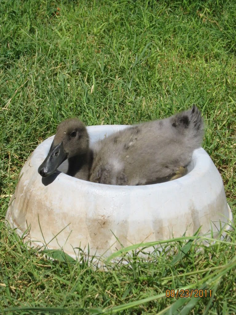 The same day as the ducklings were kind enough to be all cuteness and pose for me in the water bowl, we let the geese into the same area with them.