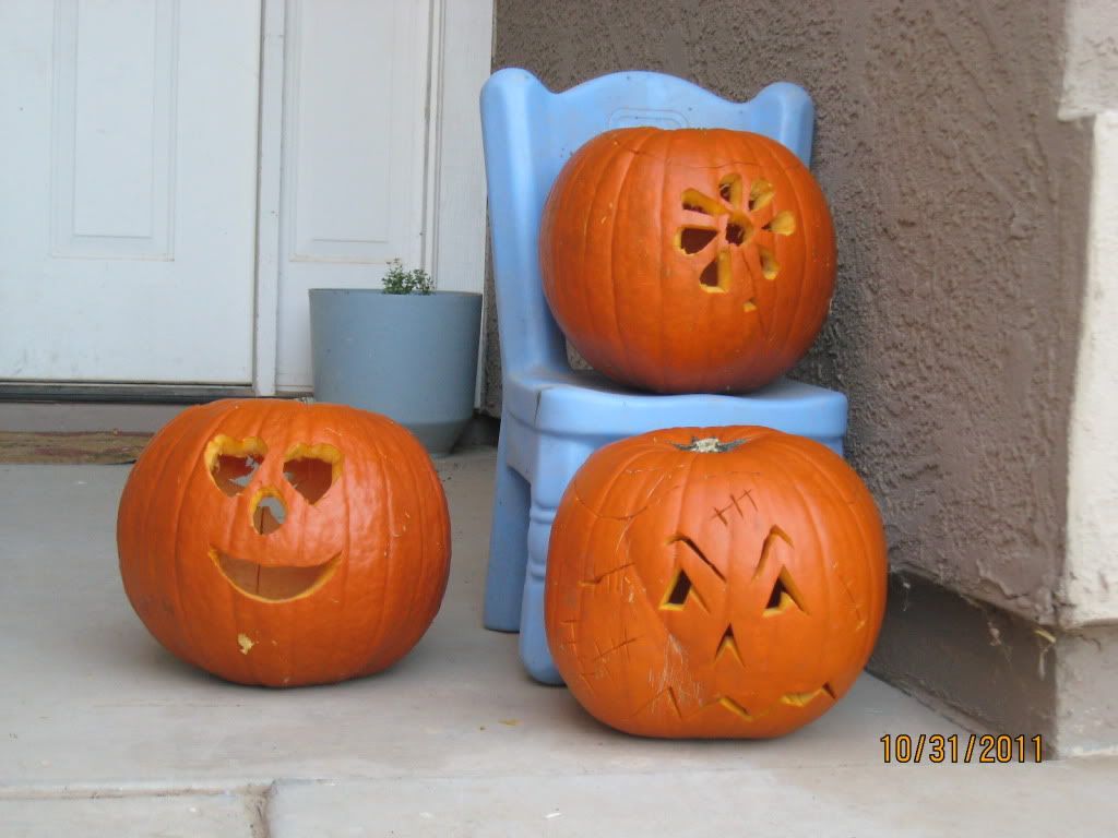 Due to time pressures, sick kids, and general busyness we ended up taking two days to carve our three pumpkins.