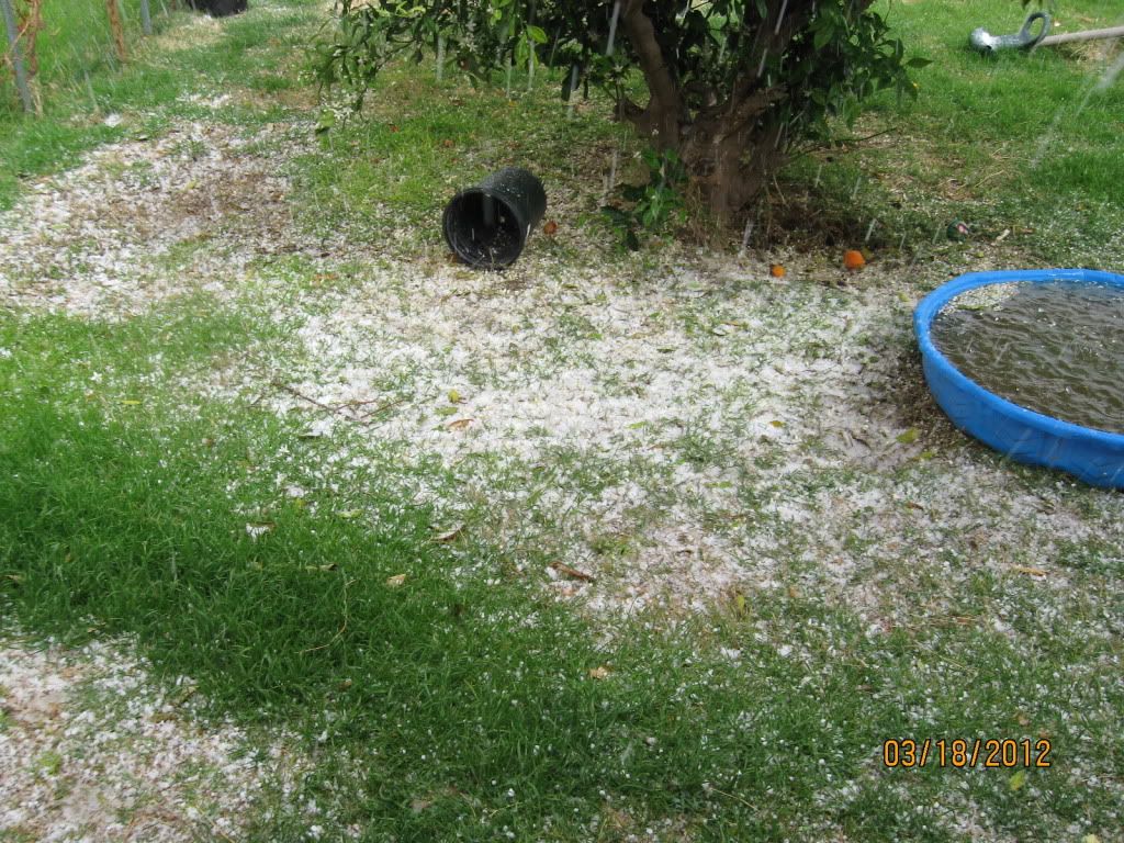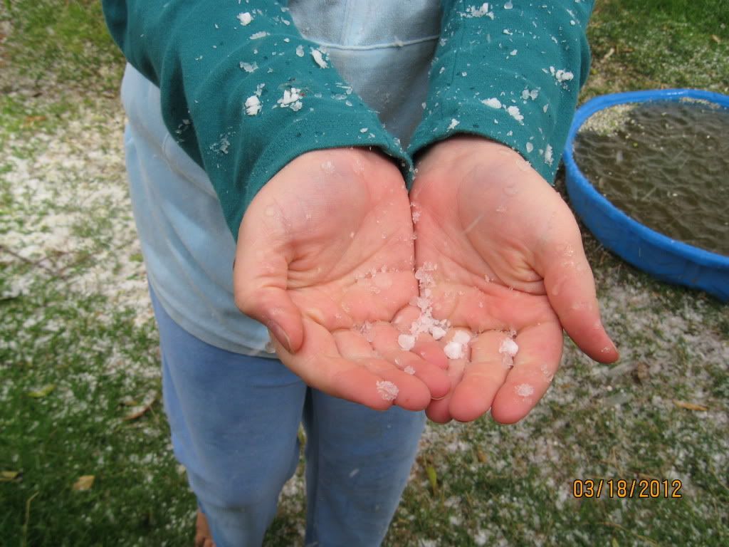 I forgot that M had taken some pictures of our hail storm the other day.