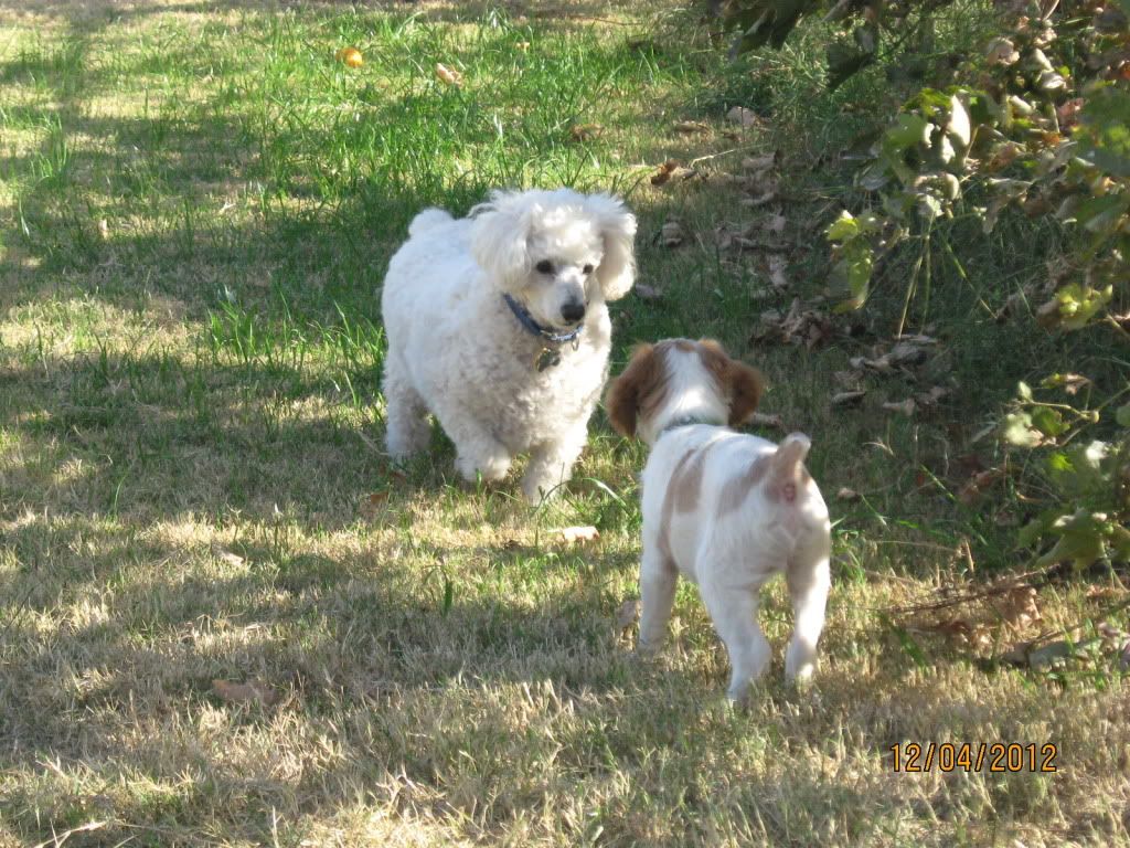 Dec. 12th, 2012 03:26 pmLast week my parents came out for a visit. This gave us an opportunity to introduce Arrow to their four little white dogs (Butchie passed away from old age a few years ago).