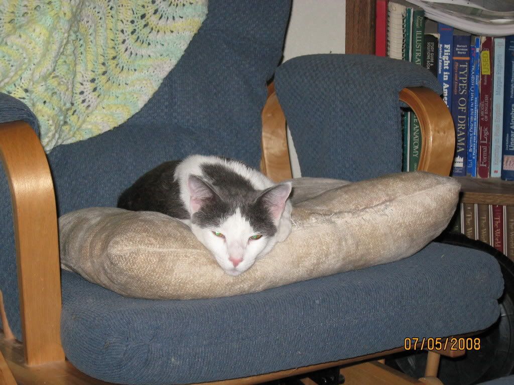 Jul. 15th, 2008 05:41 pmWell, New Cat got fixed today. I figure that means we're keeping her. C has decided she is his cat. While she was sitting in her carrier at the vet, waiting for me to pay, C looked in at her and said, "My moo cat." (He doesn't pronounce New quite right.)